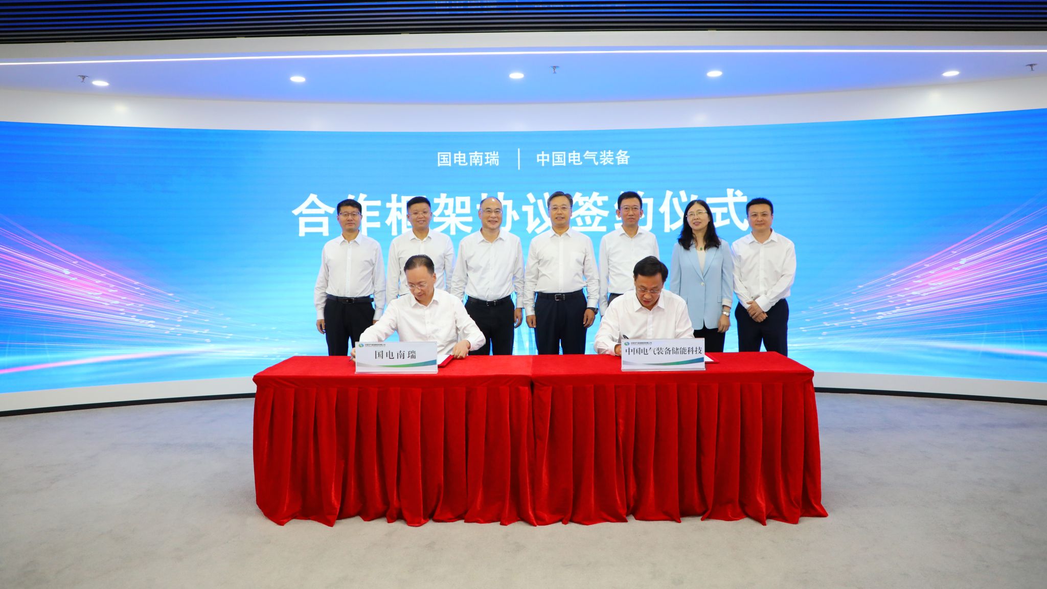 集团公司党委副书记孟汉峰主持签约仪式,所属储能公司党委副书记、总经理赵文强和南瑞集团党委委员、国电南瑞副总经理庞腊成分别代表储能公司和国电南瑞签订合作框架协议,闫华锋、郑宗强、蒋元晨、倪斌、杜文钊、张帆、季侃见证签约。