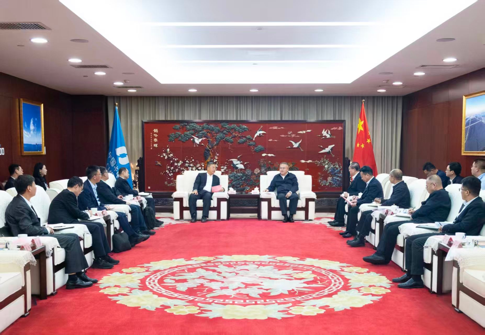 10月31日,中国电气装备党委副书记、总经理闫华锋一行到中国华电拜访交流,与中国华电党组副书记、总经理叶向东举行会谈,双方就科技创新、重大项目建设、国际业务合作等方面进行深入交流。