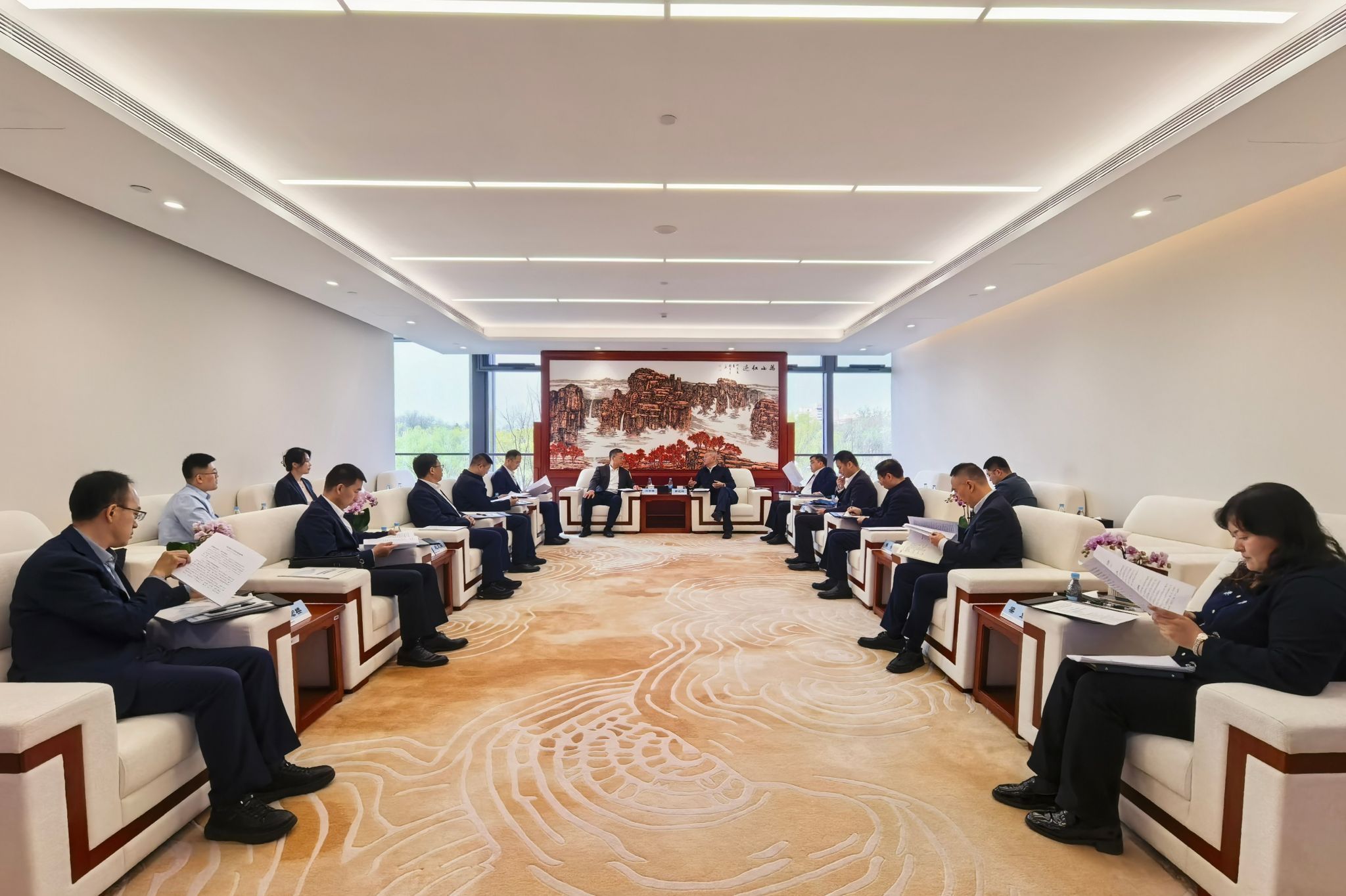 中咨公司业务发展部、能源业务部、高技术业务部、战略咨询部相关负责人;集团公司战略发展部、科技创新部、市场部,北京分公司相关负责人参加会谈。