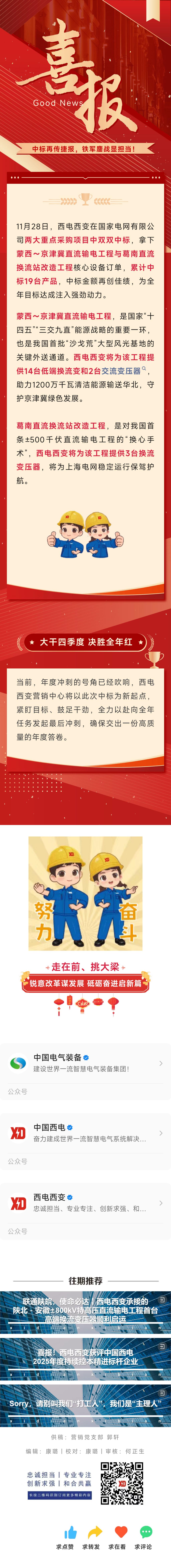 双标齐中丨西电西变斩获特高压直流输电与换流站改造工程